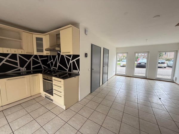 Via de entree komt u in de lichte woonkamer met vloerverwarming en een tegelvloer. De open keuken is uitgerust met diverse inbouwapparaten, waaronder een gaskookplaat, oven, afzuigkap, koelkast en vaatwasser. Vanuit de keuken heeft u via de schuifpui toegang tot de onderhoudsarme patiotuin met een ruime berging en nieuwe houten erfafscheiding.
