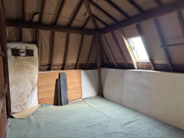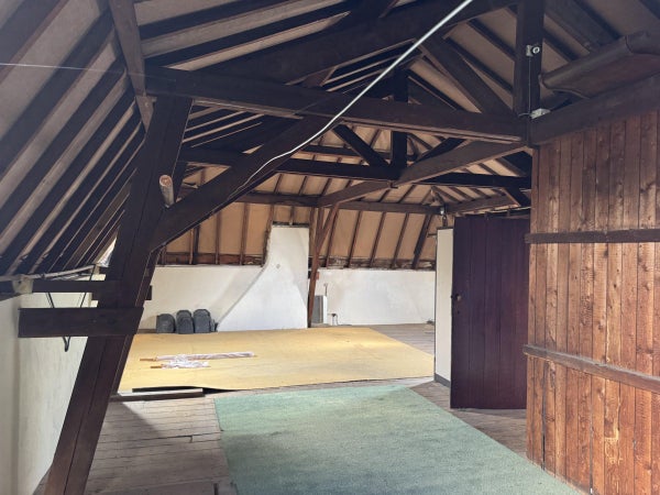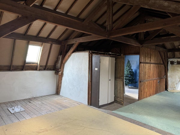 Tot slot bereiken we de zolder, hier vinden we nog een aparte kamer en een grote ruimte. Beide ruimtes op de zolder zijn opslagruimtes, ook de zolder heeft een hoog plafond waardoor deze in zijn geheel toegankelijk is.