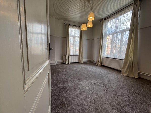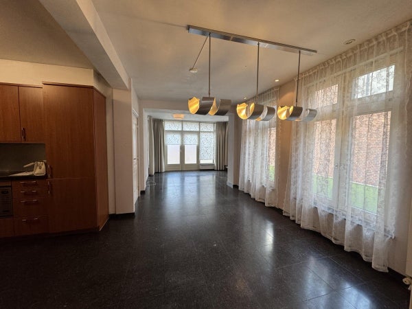 Zowel de voor- alsook de achterkamer worden gekenmerkt door hoge plafonds en grote ramen waardoor er veel lichtinval is.
