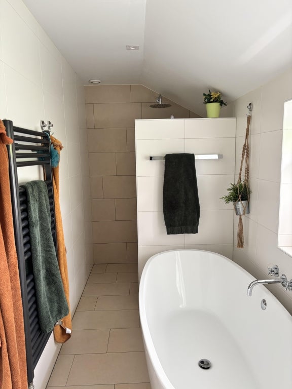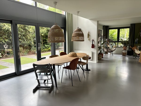 Dit hele huis is zeer ruim, maar voelt toch knus aan en straalt veel rust uit en door de enorm grote raampartijen voorzien van veel natuurlijk licht!