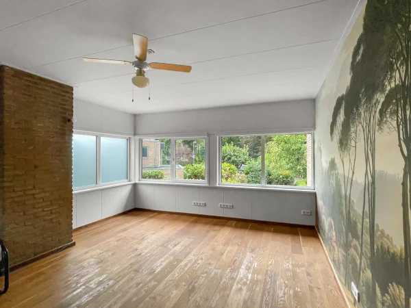 Op de mooiste locatie aan de Koningslaan in de groene villawijk Het Spiegel, ligt deze gemoderniseerde geschakelde woning uit 1976. De woning combineert het karakter van de jaren 70 met moderne gemakken en biedt veel ruimte voor een gezin. Met een totale oppervlakte van 368 m2 is er een inpandige garage, een ruime oprit en een zonnige achtertuin op het westen, wat zorgt voor veel privacy. Bij binnenkomst vindt u een hal met garderobe en toilet, en toegang tot de study en garage. De L-vormige living van ca. 45 m2 heeft een open haard en een woon/eetkeuken van ca. 16 m2. Boven zijn er vier variërende slaapkamers, met een ouderslaapkamer die via een inloopkast toegankelijk is, en twee badkamers. Deze woning is ideaal gelegen nabij natuur, scholen en het centrum van Bussum.