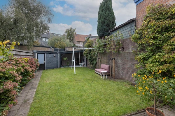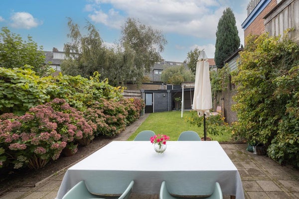 Tuin, schuur en veranda: De zonnige tuin is op het zuidoosten gesitueerd en beschikt over een schuur en een veranda. De tuin is ruim 12 meter diep.