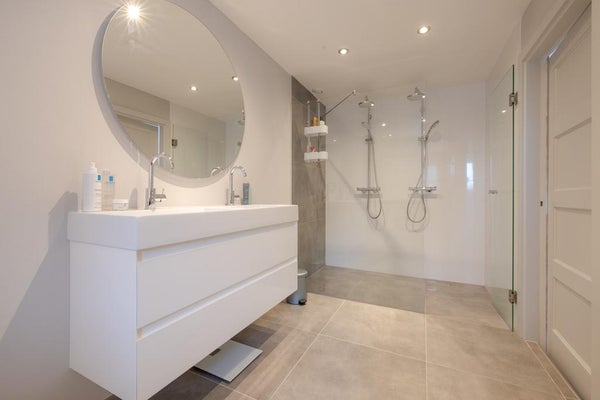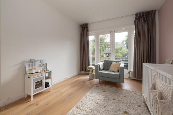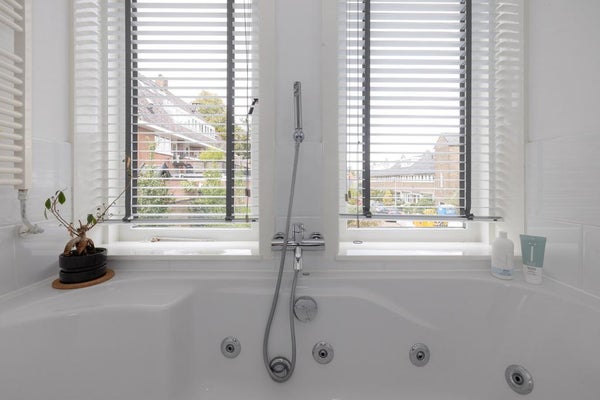 Overloop, ruime slaapkamer aan de achterzijde met een balkon over de gehele breedte met uitzicht op de zonnige tuin, Tweede grote slaapkamer aan de voorzijde, derde slaapkamer aan de achterzijde. De beide grote slaapkamers beschikken over een vaste kast. Moderne badkamer voorzien van inloopdouche, (bubbel)ligbad, dubbele wastafel en vloerverwarming. Er is een apart toilet.