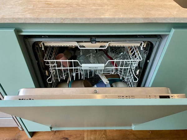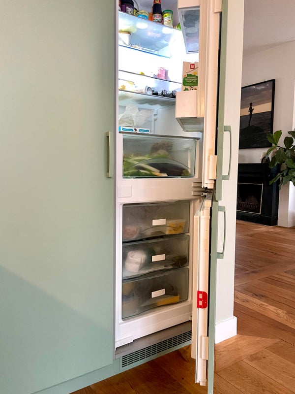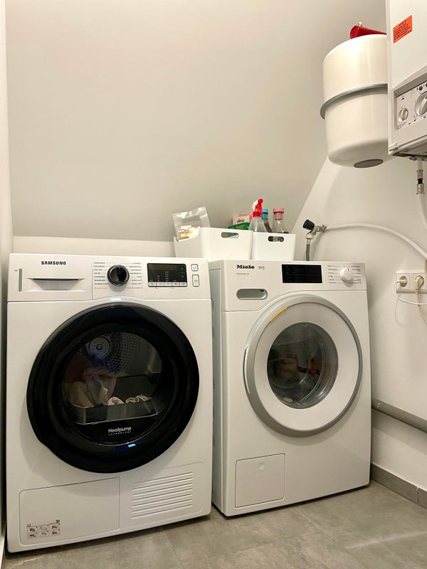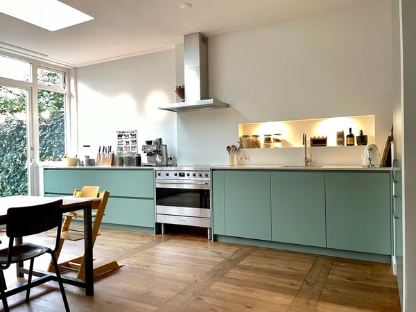 Ruime keuken met Nespressomachine, waterkoker, vaatwasser, koelkast, vriezer. Ruim voldoende bergmogelijkheden in de keuken.