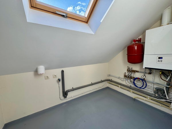Tweede verdieping: Vaste trap naar ruime overloop met cv-opstelling en aansluiting voor wasmachine/droger. Vierde slaapkamer met dakkapel en extra bergruimte.