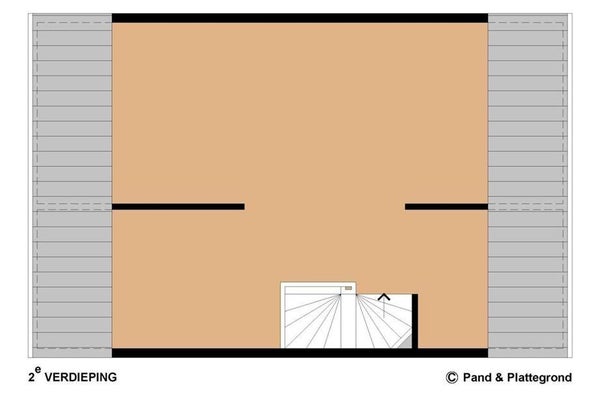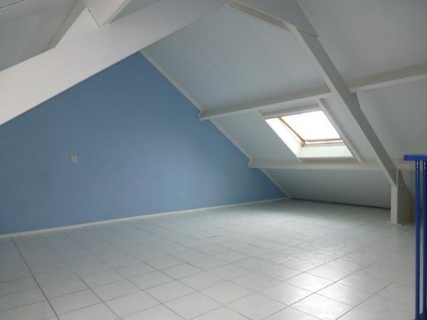 Grote zolderruimte, eventueel geschikt voor 1 of meer slaapkamers, geheel voorzien van plavuizenvloer, overloop met CV-opstelling