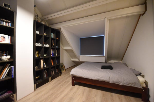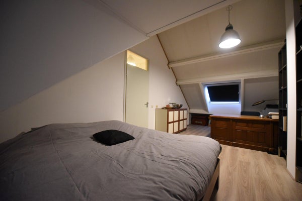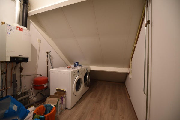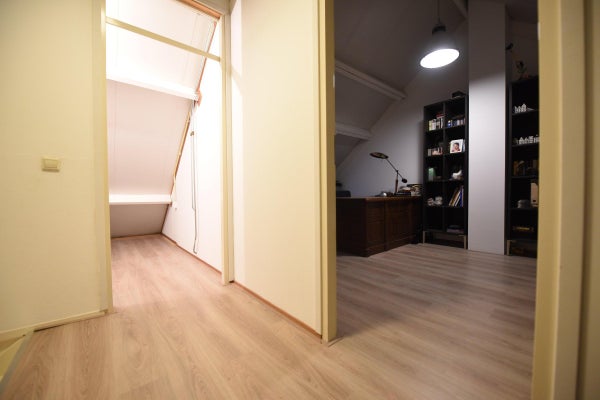 Overloop met opbergruimte en een deur naar de wasruimte voorzien van opstelplaats van wasmachine en deur naar de zolderkamer (ca. 7,0m x 3,40m) welke momenteel is ingericht als 3e slaapkamer met een aparte werkplek.