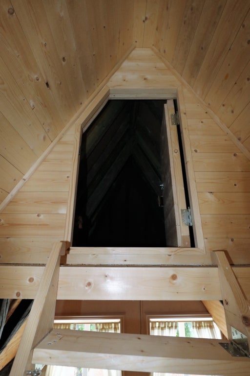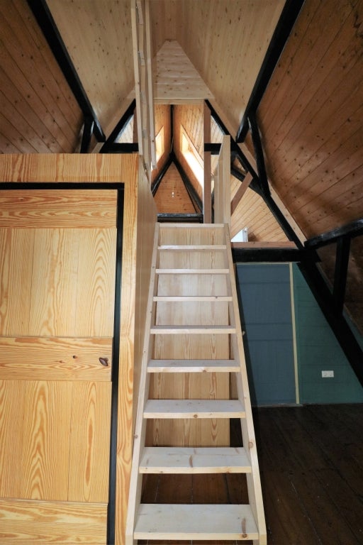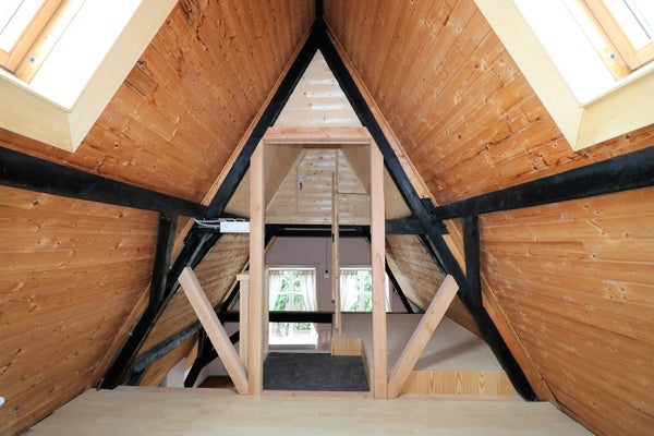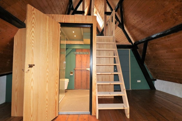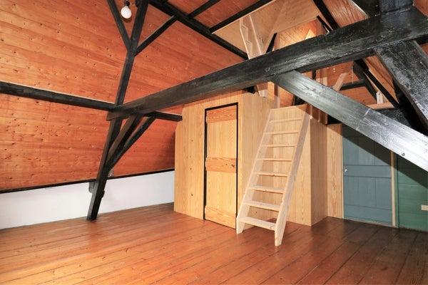 Op de eerste verdieping zijn twee slaapkamers, één aan de voorzijde met oude balken en één aan de achterzijde. Verder is er een zolder eveneens met oude balken, die ook als slaapkamer te gebruiken is. Boven de voorslaapkamer is een vliering (bergzolder).