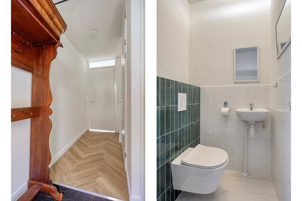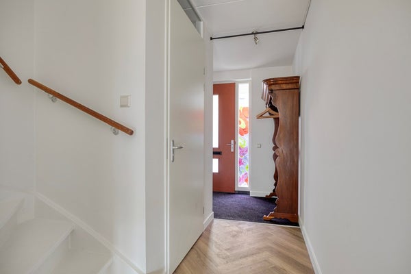 Entree in hal met toegang tot het toilet, de meterkast, de trap en uiteraard de woonkamer.