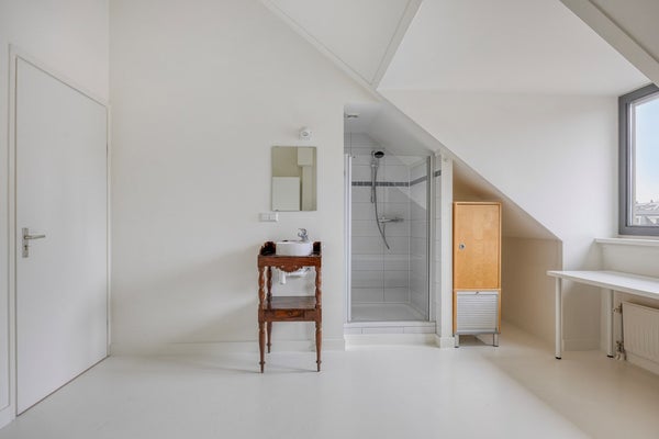 Middels trap bereikt u de 2e etage en stap je binnen in een open ruimte, welke ideaal is als kantoorruimte. Middels een deur bereik je de 4e slaapkamer welke is voorzien van een dubbel bed, douchecabine en wastafel met spiegel.