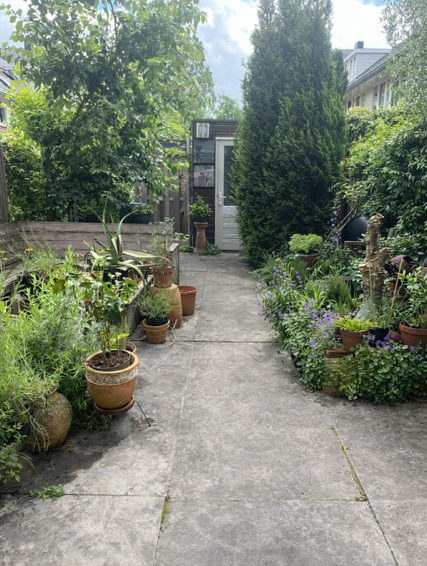 De fijne achtertuin is gelegen op het zuidwesten waardoor dit een ideale plek is in de lente- en zomermaanden. Er is een schuur aanwezig, ideaal voor opslag van fietsen en tuinaccessoires. Tevens is er een achterom aanwezig.