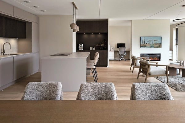 De keuken is een ware droom voor iedere kookliefhebber. Hoogwaardige afwerking en moderne apparatuur maken koken hier een plezier: twee combi-ovens, een kookplaat met geïntegreerde afzuiging, een luxe mengkraan, inbouw vaatwasser, koelkast en vriezer. Naast de keuken is een speciale coffee corner, perfect om de dag te beginnen met een heerlijke cappuccino of espresso.