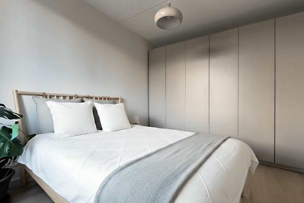 Via de hal heb je toegang tot alle ruimtes van het appartement. Aan de voorzijde, op het noorden, bevinden zich twee royale slaapkamers, beide volledig gemeubileerd met hoogwaardige, moderne meubels. Alles is nieuw en zorgvuldig uitgekozen voor comfort en stijl.