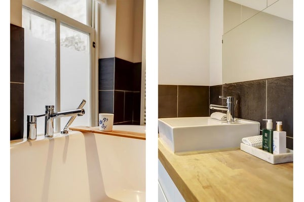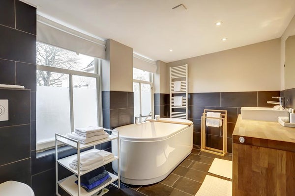 Overloop met vaste kast en vlizotrap naar de zolder. Ruime slaapkamer met naastgelegen kleine kamer, beiden aan de voorzijde gelegen met fraai uitzicht. Nette, ruime badkamer met vrijstaand ligbad, douche, wastafelmeubel en toilet.