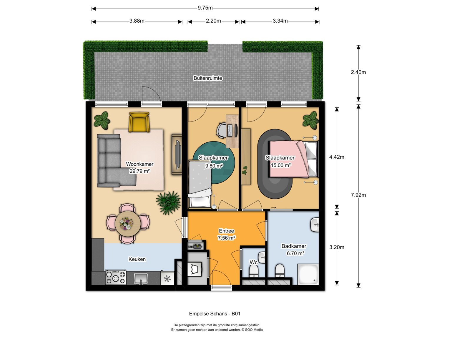 Dit luxe 3-kamerappartement, gelegen op de begane grond in de Empelse Schans, is geschikt voor 55-plussers en biedt een comfortabele woonomgeving. De woning beschikt over een hal, berging met wasmachineaansluiting, een separaat toilet, een woonkamer met open keuken uitgerust met inbouwapparatuur, twee slaapkamers, en een badkamer met douche, wastafel en toilet. Geniet van toegang tot een terras en een gemeenschappelijke groene ruimte waar buurtgenoten elkaar kunnen ontmoeten. Dit duurzame appartement heeft een energielabel A en maakt gebruik van groene stroom via zonnepanelen. De huurprijs bedraagt € 1.235,– per maand, met servicekosten van € 99,–. Beschikbaar vanaf 1 april 2026 voor een minimale huurperiode van 12 maanden.