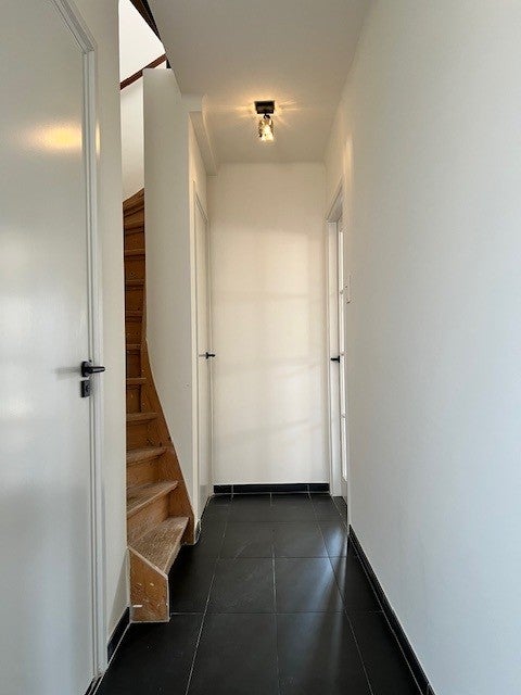 De badkamer is gelegen aan de achterzijde, heeft een luxe afwerking en is uitgerust met een douchecabine, wandcloset en een groot dubbel wastafelmeubel. Het raam in de badkamer zorgt voor een fijne lichtinval en ventilatie. De vloeren van de overloop en slaapkamers worden voorzien van een nieuwe pvc vloer. Op deze verdieping vindt u tevens een wasruimte met de opstelling voor de wasmachine en droger.