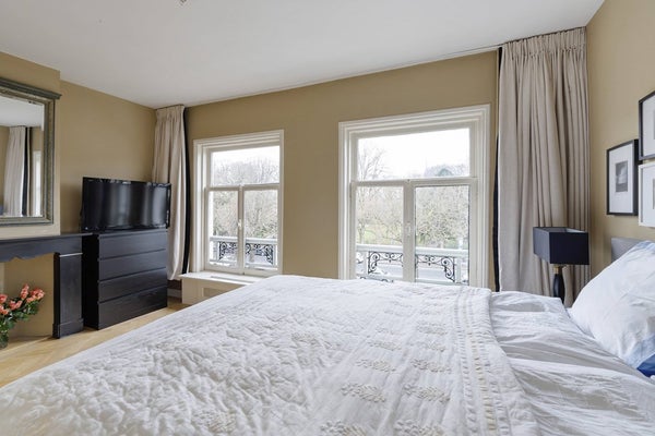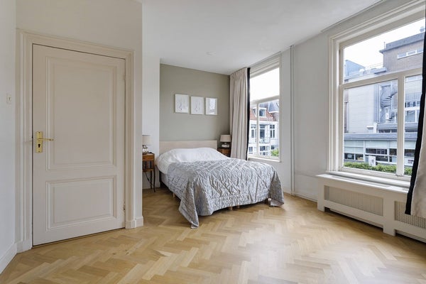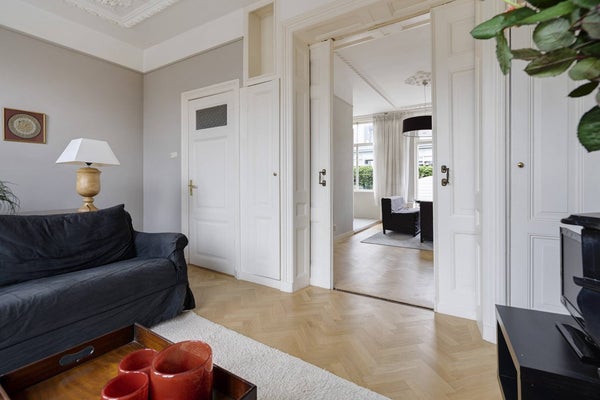 Leef je leven met uitzicht op de Paleistuin. Op deze uitzonderlijk groene locatie, in het levendige stadscentrum, vind je dit mooie en karakteristieke, drie-laagse bovenhuis, gelegen aan de Toussaintkade langs het kanaal. Een rustige en romantische plek, hoewel, grenzend aan het trendy Hofkwartier. Om de hoek zijn de Prinsesstraat en Noordeinde, vol met designwinkels, kleine boetieks, delicatessenzaken, (ster)restaurants en kunstgalerijen. Geniet van het groen van de Paleistuin tijdens je ochtendrun of een buiten yogales. Of haal een picknickmand bij een van de lunchrooms en ga in het gras zitten.