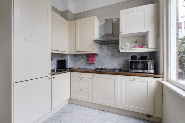 Private ingang op straatniveau, interne trap omhoog naar de eerste verdieping. De prachtige woon- en eetkamer is separabel door authentieke en-suite deuren. Visgraatvloer is overal aanwezig, de schoorsteenmantel en hoge plafonds met ornamenten geven het huis een karakteristieke uitstraling. Grote ramen zorgen voor veel daglicht en een mooi uitzicht over het kanaal richting de Paleistuin. Eetkamer met open keuken en openslaande deuren naar het zonnige terras. De keuken is uitgerust met een gasfornuis met afzuigkap, vaatwasser en koelkast/vriezer. Apart toilet in de hal.
