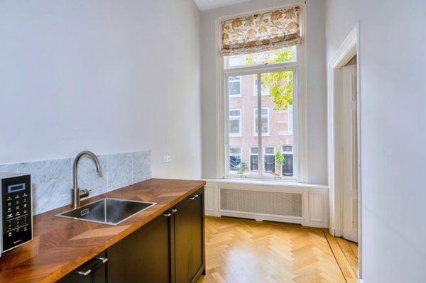 Elegante, monumentale 5-slaapkamer, 2-badkamer townhouse met diepe achtertuin en (optioneel) parkeergelegenheid op eigen terrein in de meest gewilde buurt van Den Haag: Archipel.