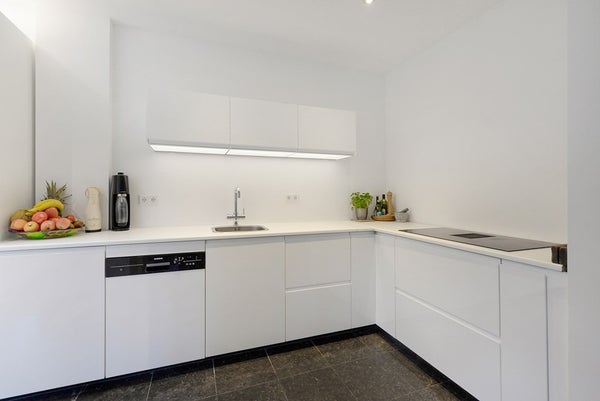 - luxe keuken voorzien van: Amerikaanse koelkast, stoomoven, combi-magnetron, vaatwasser, inductie kookplaat met geïntegreerde afzuiging. De keuken is inmiddels voorzien van een granietstenen aanrechtblad. Het aanrechtblad zichtbaar op de foto was een tijdelijk blad.