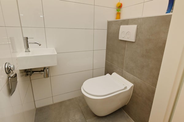 Op de eerste verdieping bevinden zich drie ruime slaapkamers, ideaal als ouderslaapkamer (met toegang tot het balkon/terras), kinderkamers of thuiswerkplekken. De moderne badkamer is uitgerust met een inloopdouche, wastafelmeubel en een apart tweede toilet.
