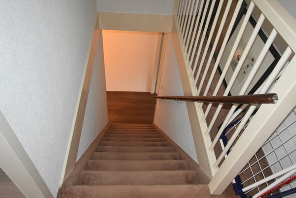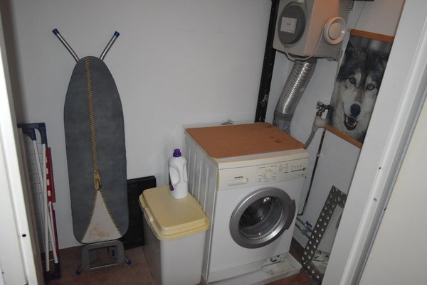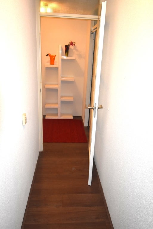 Overloop met berging en tevens de wasmachine en de droger, 3e grote slaapkamer met Velux dakraam en diepe bergkast. De slaapkamer is voorzien van een laminaatvloer.