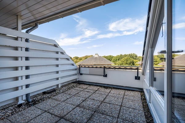 Vierde slaapkamer, ruimte voor de wasmachine en verwarmingssysteem, vaste kasten, ruim dakterras met een prachtig uitzicht op de duinen. En een moderne nieuwe badkamer met douche, toilet en een breed wastafelmeubel.