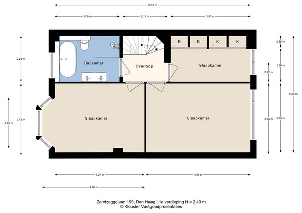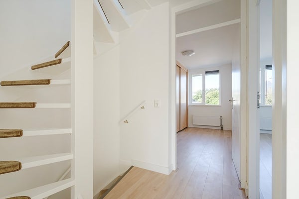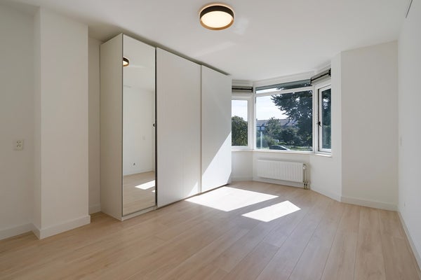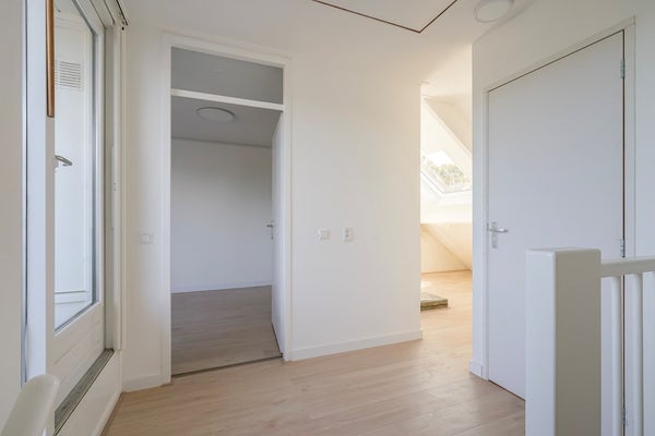 Overloop, aan de voorzijde gelegen ruime slaapkamer met erker (3,38x4,85), een nieuwe moderne badkamer met ligbad, inloopdouche, dubbele wastafel en een zwevend toilet. Hoofdslaapkamer (3,34x4,96) aan de achterzijde en een derde kamer (3,80x2,21) tevens aan de achterzijde vzv zeer ruime bergkast over de hele lengte van de kamer.