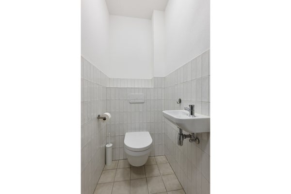 In de hal bevindt zich de meterkast en een modern separaat toilet met fonteintje.