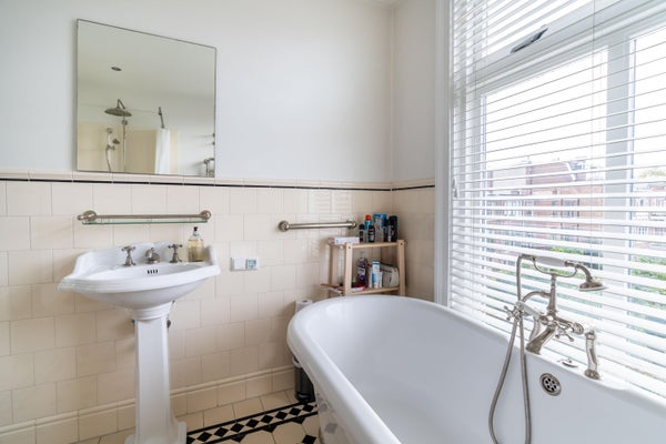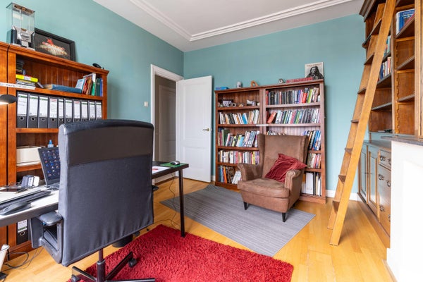 Overloop, moderne badkamer met vrijstaand ligbad, inloopdouche, wastafel en designradiator. Aan de achterzijde een ruime slaapkamer met serre. De tussenkamer met dakraam is ideaal als extra slaapkamer of werkkamer. Aan de voorzijde bevinden zich twee kamers waarvan er een in gebruik is als wasruimte, voorzien van wasmachine, droger en extra aanrecht met spoelbak. De andere kamer aan de voorzijde is een slaapkamer met ingebouwde (boeken)kasten.