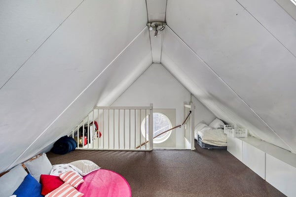 Op de bovenste verdieping biedt een lichte en luchtige zolder een veelzijdige bonusruimte – ideaal als een extra slaapkamer, creatieve studio of speelkamer – overspoeld met natuurlijk licht.