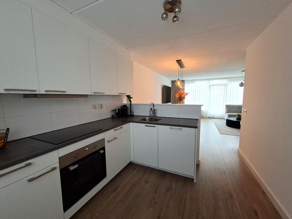 Je betreedt de woning vanaf de Pieter Klaarhamerstraat waar je een genummerde parkeerplaats ter beschikking hebt. In de entreehal is de garderobe, trapopgang naar de verdieping, meterkast en een toilet met fonteintje gesitueerd. Bij het betreden van de woonkamer kom je bij de half open keuken (2025) voorzien van de nodige inbouwapparatuur waaronder een inductiekookplaat, afzuigschouw, koelkast en oven.