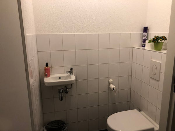 - (Deels) betegelde toiletruimte met zwevend toilet en fonteintje;