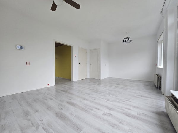 Bij binnenkomst kom je in de hal met toegang tot de lichte woonkamer. De woonkamer biedt voldoende ruimte voor een zit- en eethoek en heeft een fijne lichtinval.