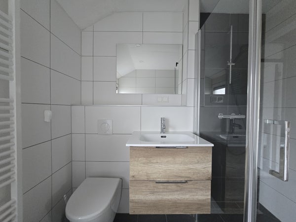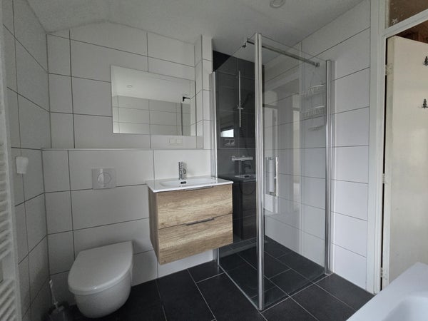 Op de verdieping vind je meerdere slaapkamers en een nette, verzorgde badkamer met douche en ligbad, wastafel en toilet.