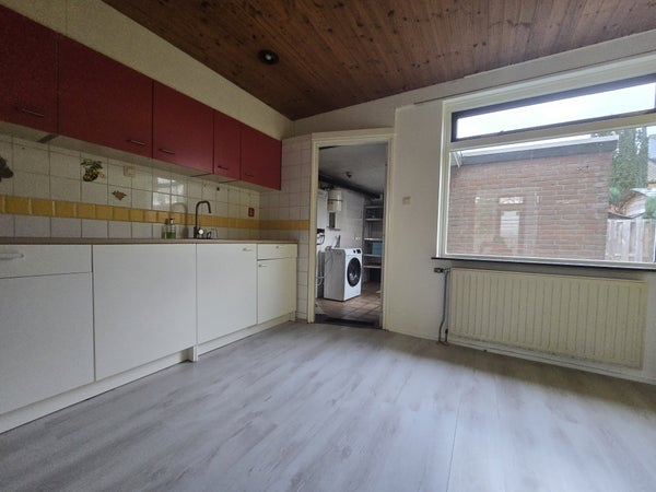 De keuken bevindt zich aan de achterzijde van de woning en geeft toegang tot de tuin.