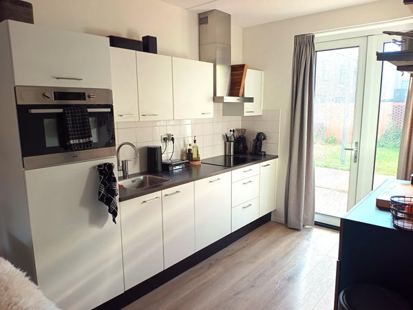 - Luxe keuken met Grohe-mengkraan, inductiekookplaat, vaatwasser, koelkast met vriesvak, combimagnetron en RVS schouwkap