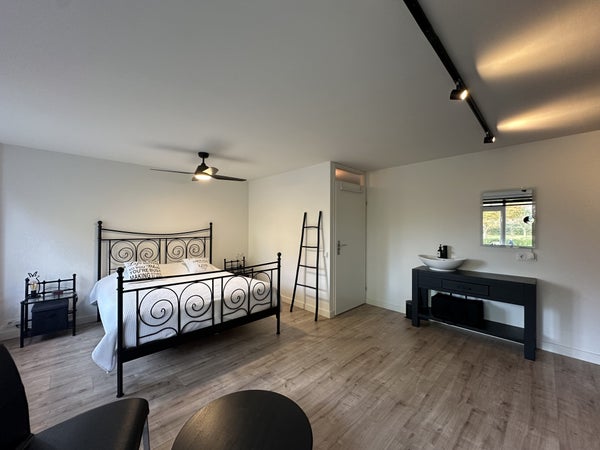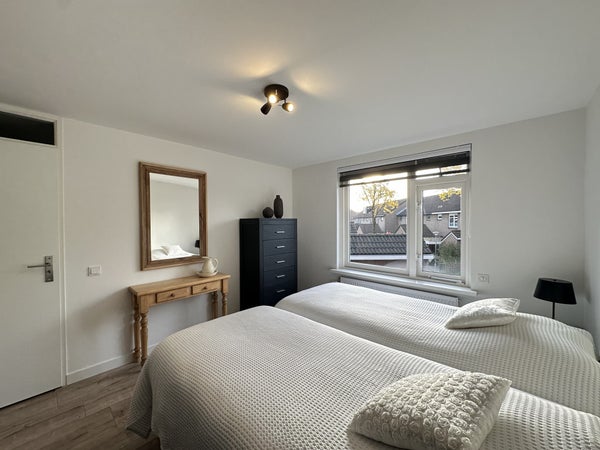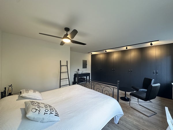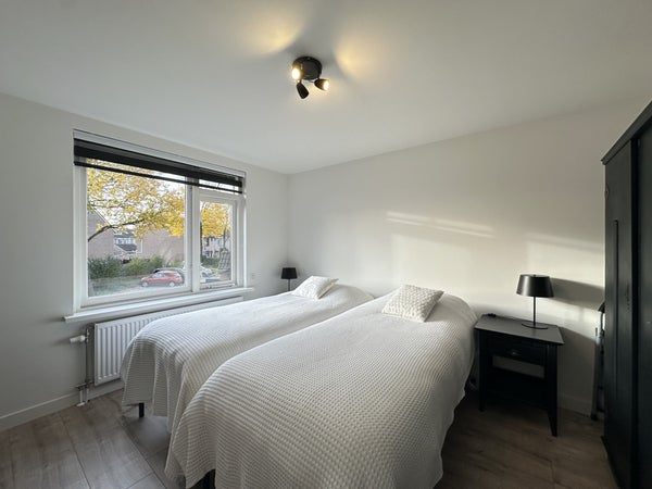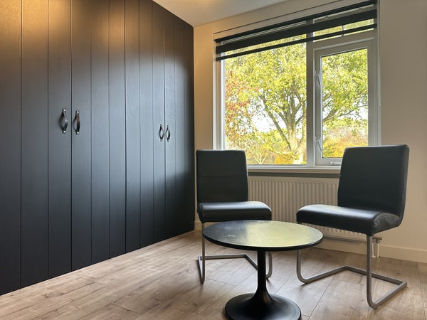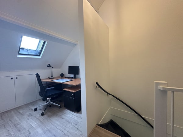 Via de overloop is de zolderverdieping bereikbaar, waar een werkruimte is ingericht met bureau, stoel, kastruimte en dakraam. Deze verdieping biedt een rustige werkplek aan huis.De slaapkamer op deze etage, de garage en de schuur blijven afgesloten voor gebruik.Bijzonderheden:De woning zal inclusief nutsvoorzieningen worden verhuurd, de huurprijs wordt dus vermeerderd met €200 per maand, Totaal €2995 incl. nutsvoorzieningen Slaapkamer 3, de garage en de tuinschuur worden niet mee verhuurdBeschikbaar van 27-11-2025 t/m 01-05-2026