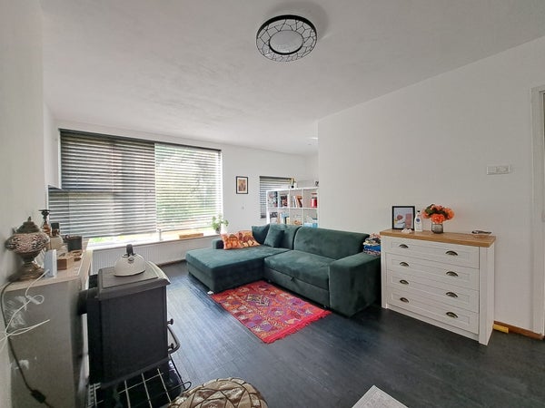 Eenmaal in de ruime woonkamer geeft dit, door de lichte muren en de grote ramen partijen, een ruimtelijk gevoel. Het natuurlijke lichtinval en uitzicht naar buiten geeft daarnaast ook nog eens een warme beleving!