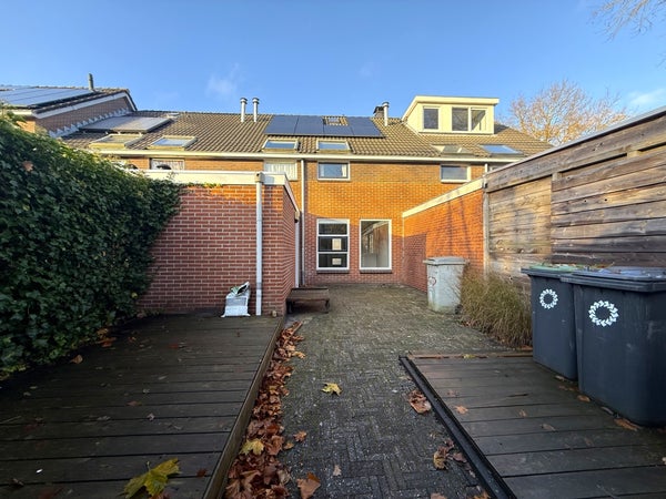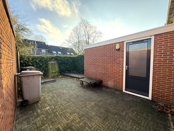 De keuken is voorzien van een vaatwasser, kookplaat en koelvriescombinatie. In de ruime bijkeuken is voldoende ruimte en een aansluiting voor de wasmachine en droger. Vanuit de bijkeuken loop je zo de tuin in. Het geheel is omheind met schuttingen.