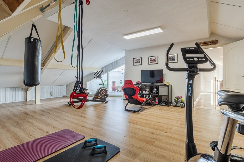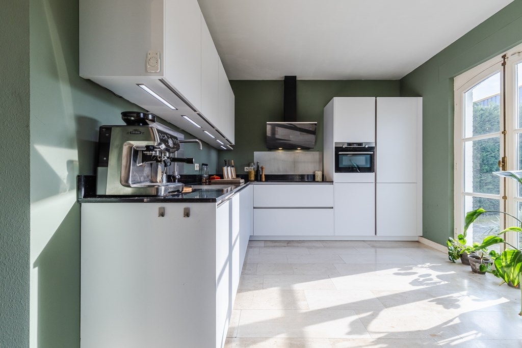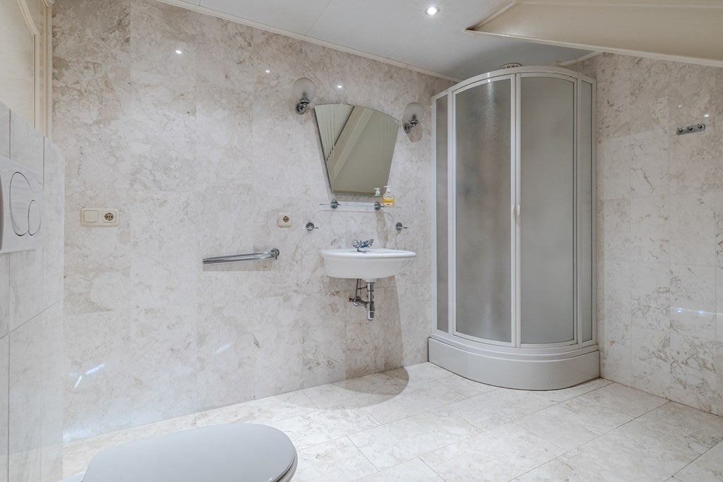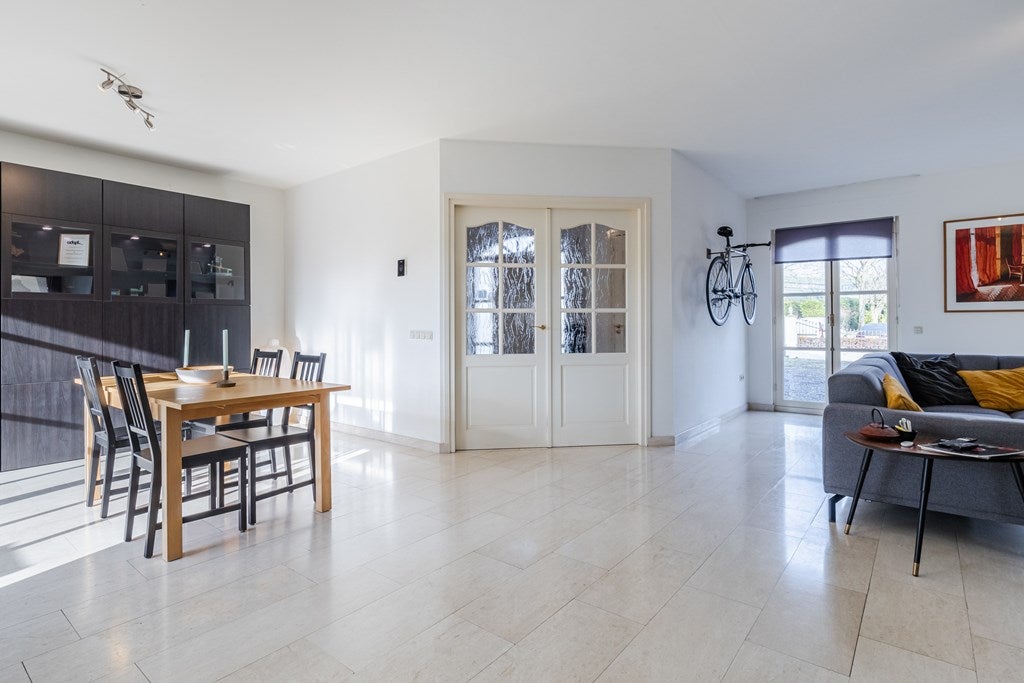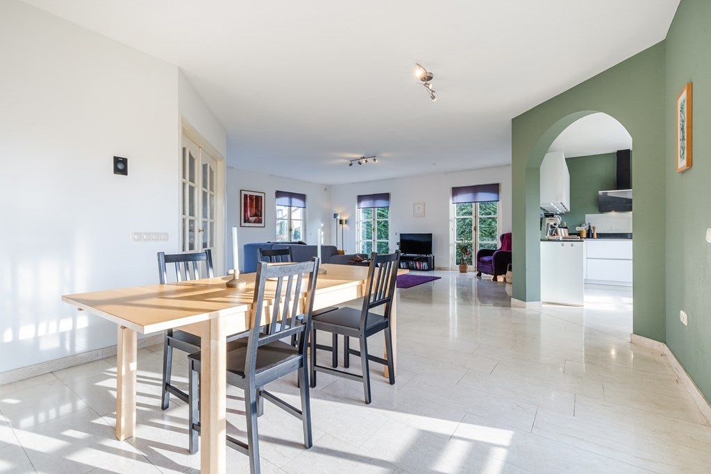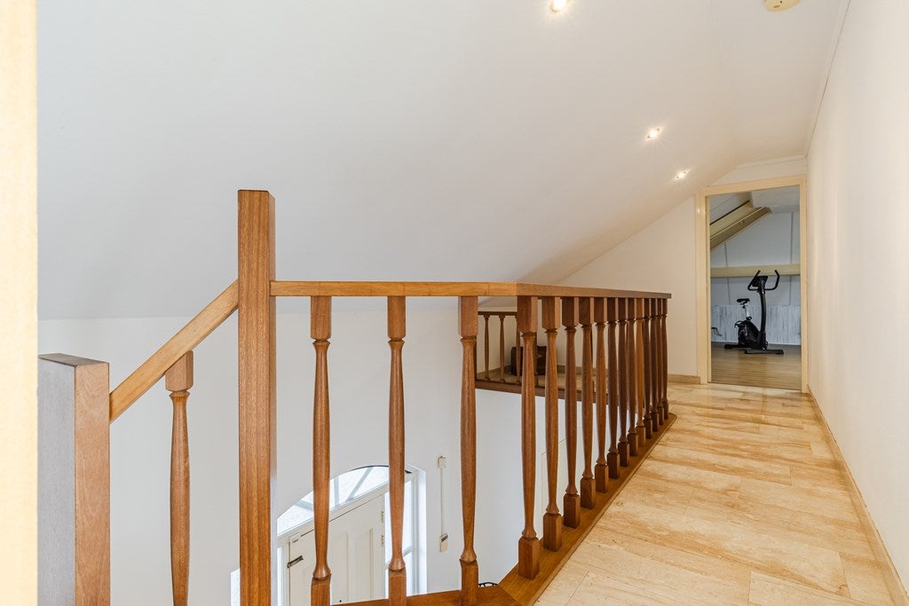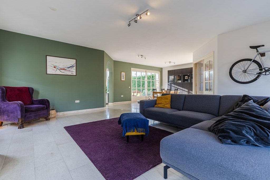 Dit exclusieve vrijstaande landhuis met separaat bijgebouw is ideaal voor wie wonen en werken wil combineren. Gelegen aan de rand van het centrum, nabij een natuurgebied, biedt het diverse mogelijkheden. Gebouwd in 1998, met marmeren vloeren en vloerverwarming, beschikt het over een royale entree, een lichte L-vormige woonkamer van 53 m², een luxe open keuken met vernieuwde inbouwapparatuur en een toegang tot een overdekt terras op het zuiden. De begane grond heeft ook twee slaapkamers en een luxe badkamer. Op de eerste verdieping zijn drie ruime slaapkamers en een tweede badkamer. De achtertuin van 630 m² grenst aan natuurgebied. Het bijgebouw is uitstekend geschikt voor zakelijke doeleinden en heeft onder andere ontvangstruimten en extra bergruimte. Beschikbaar voor huur.