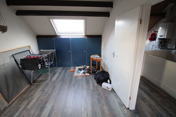 Tweede verdieping: Voorzolder voorzien van aansluitingen voor de witgoedvoorzieningen en toegang tot de 4e slaapkamer. Deze slaapkamer geeft toegang tot het balkon.