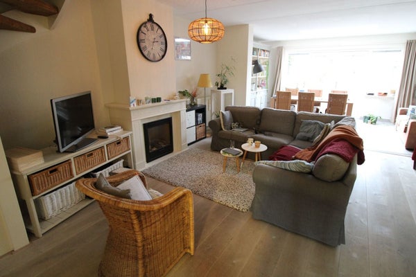 Indeling: Entree met toiletruimte met fonteintje, garderobe en toegang tot de royale woonkamer. De woonkamer is aan de achterzijde met 3 meter uitgebouwd. De lichtkoepel, openslaande deurenen hoge ramen zorgen voor veel lichtinval. De uitbouw beschikt over vloerverwarming. De halfopen keuken is voorzien van divers inbouwapparatuur zoals een gaskookplaat met wokbrander, afzuigkap, vaatwasser, koelkast, vriezer en combi-oven.