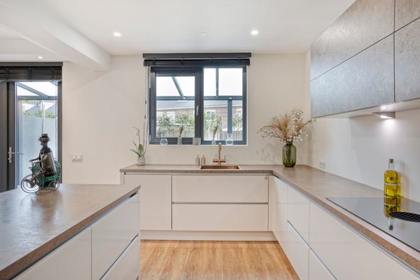 Aan de Roelantlaan 26 in Eindhoven staat een volledig gerenoveerde twee-onder-een-kapwoning klaar om in te trekken. Deze woning beschikt over een woonoppervlak van 183 m² met 8 kamers, waaronder 5 slaapkamers. De afgelopen periode is het huis van boven tot onder grondig gerenoveerd, met nieuwe vloeren voorzien van vloerverwarming, strak gestucte wanden, en een luxe open keuken met hoogwaardige apparatuur. De begane grond herbergt ook een kantoor of extra slaapkamer, ideaal voor thuiswerken. Op de eerste verdieping zijn meerdere moderne slaapkamers en een luxe badkamer. De tweede verdieping bevat een ruime slaapkamer met airco en een tweede luxe badkamer. De achtertuin biedt een overkapping van meer dan 30 m², perfect voor het hele jaar door genieten, en er zijn 12 zonnepanelen aanwezig. Deze woning, met energielabel A, is instapklaar en onderhoudsarm, ideaal voor een groot gezin.