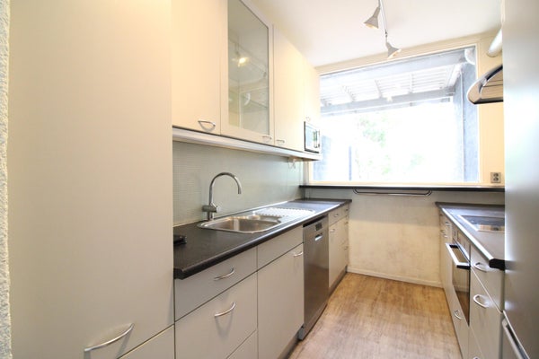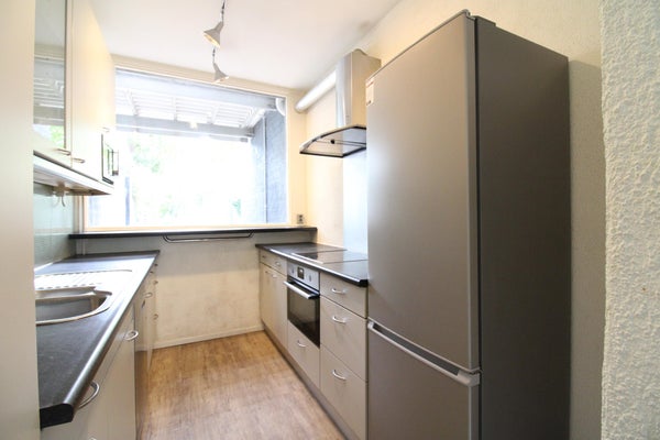 Royale woonkamer met schuifpui naar tuin met berging. Aparte keuken welke voorzien is van alle gewenste apparatuur zoals een electrische kookplaat, koel / vriescombinatie, vaatwasser, magnetron, spoelbak en convectie stoomoven.