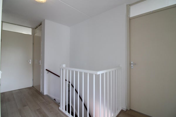 Via de trap kunt u de 1e verdieping bereiken, welke toegang biedt tot een 4-tal (slaap)kamers. De ouderslaapkamer is aan de voorzijde van de woning gesitueerd, en de overige kamers aan de achterzijde. Eveneens aan de voorzijde treft u de badkamer, bestaande uit een douchecabine, wasatefel en toilet. De wasruimte is direct naastgelegen.