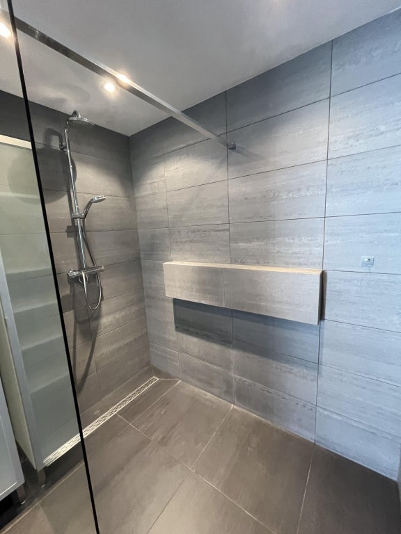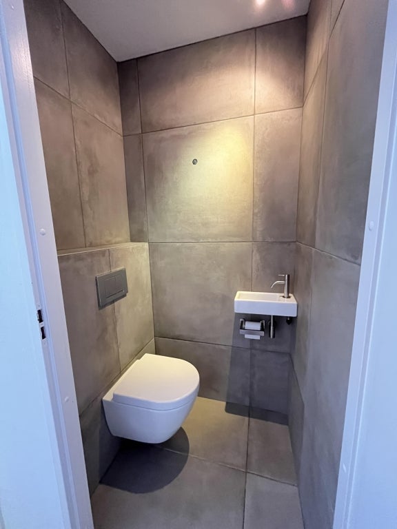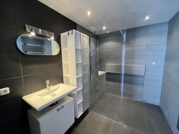Badkamer met douche en wastafel. Separaat toilet.