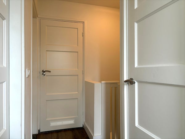 Op de eerste verdieping bevindt zich een overloop die leidt naar drie slaapkamers, een badkamer en een washok. Twee ruime slaapkamers liggen aan weerszijden van de woning, elk met voldoende ruimte voor comfortabel wonen. Daarnaast is er een extra kamer die kan dienen als kastenkamer of werkkamer. De badkamer is onlangs gerenoveerd en beschikt over een ruime douchecabine, toilet en wastafel met wastafelmeubel, inclusief vloerverwarming.