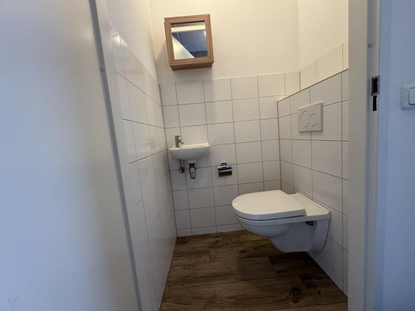 In de hal naar de trapopgang bevindt zich het gasten toilet.