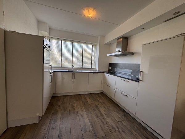 Bij binnenkomst in de hal bevindt zich naast de garderobe aan de linkerzijde de keuken welke gelegen is aan de voorzijde van de woning. De woning is opgesteld in hoekopstelling en voorzien van alle wenselijke (inbouw) apparatuur waaronder een koelkast, vriezer combinatie magnetron/oven, vaatwasser, inductie kookplaat en afzuigkap. Door de grote ramen is de keuken erg licht.